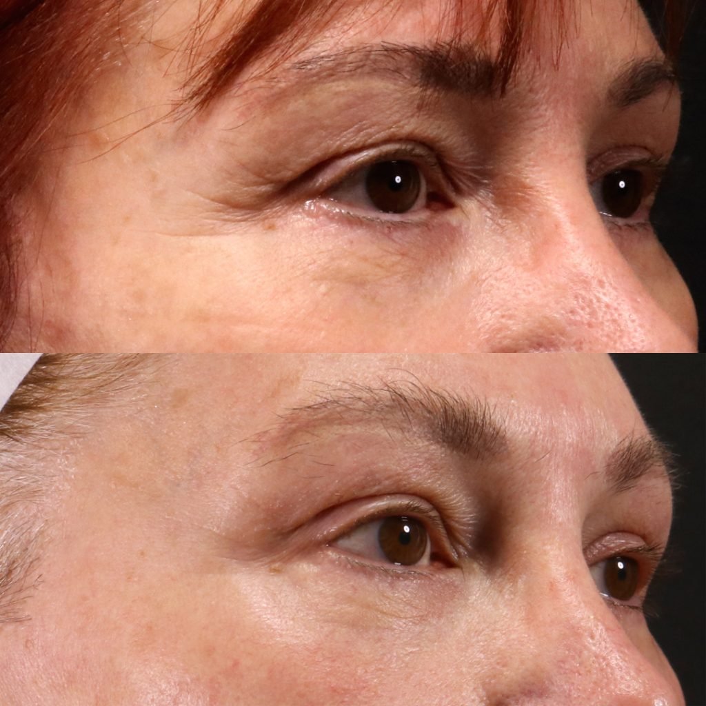 Precision-fractional passes contract eyelid skin – ideal for mild → moderate laxity or “heavy-lid” fatigue.